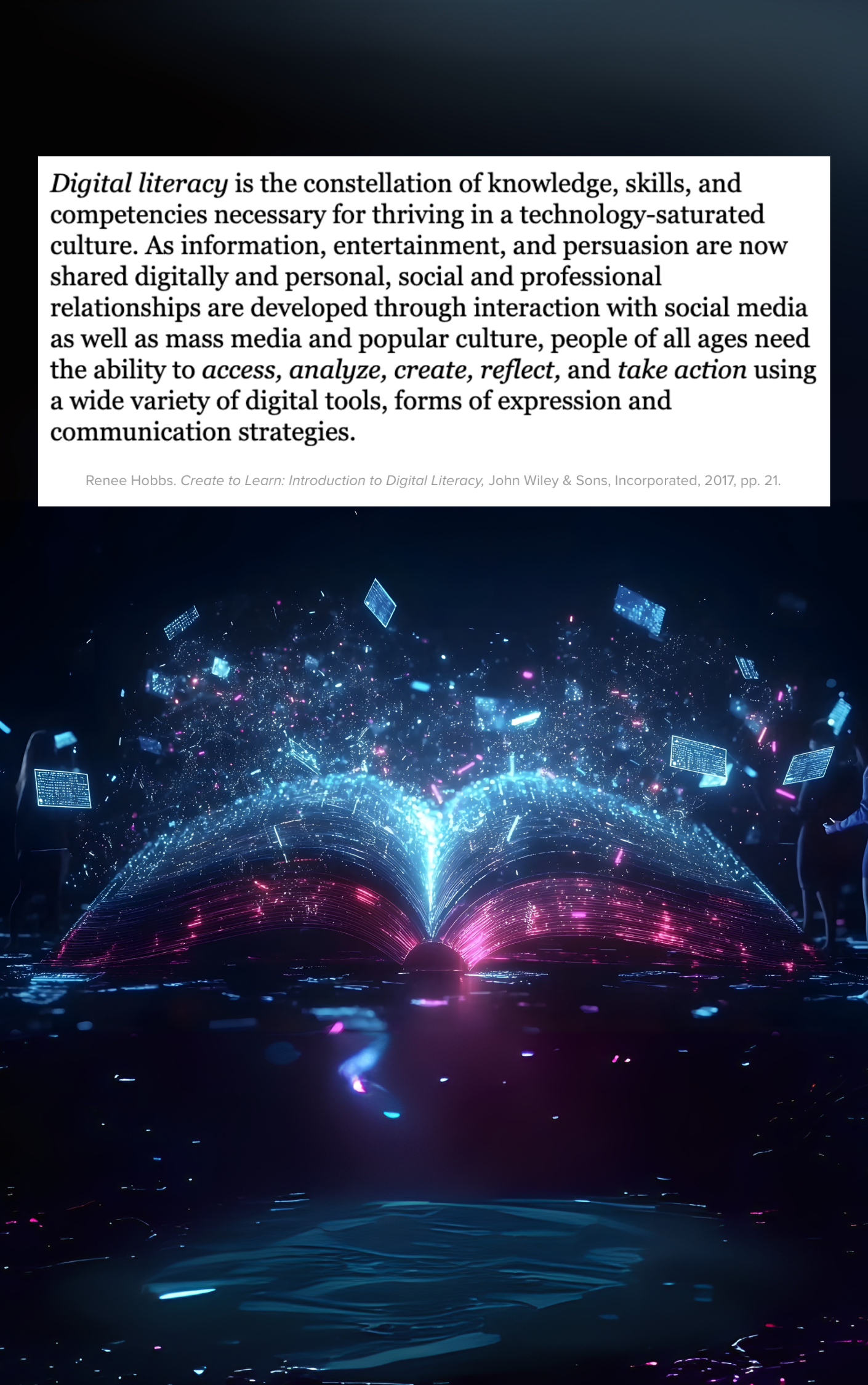 In Create to Learn : Introduction to Digital Literacy, critical media scholar and Professor of Communication, Renee Hobbs, defines "digital literacy" this way: