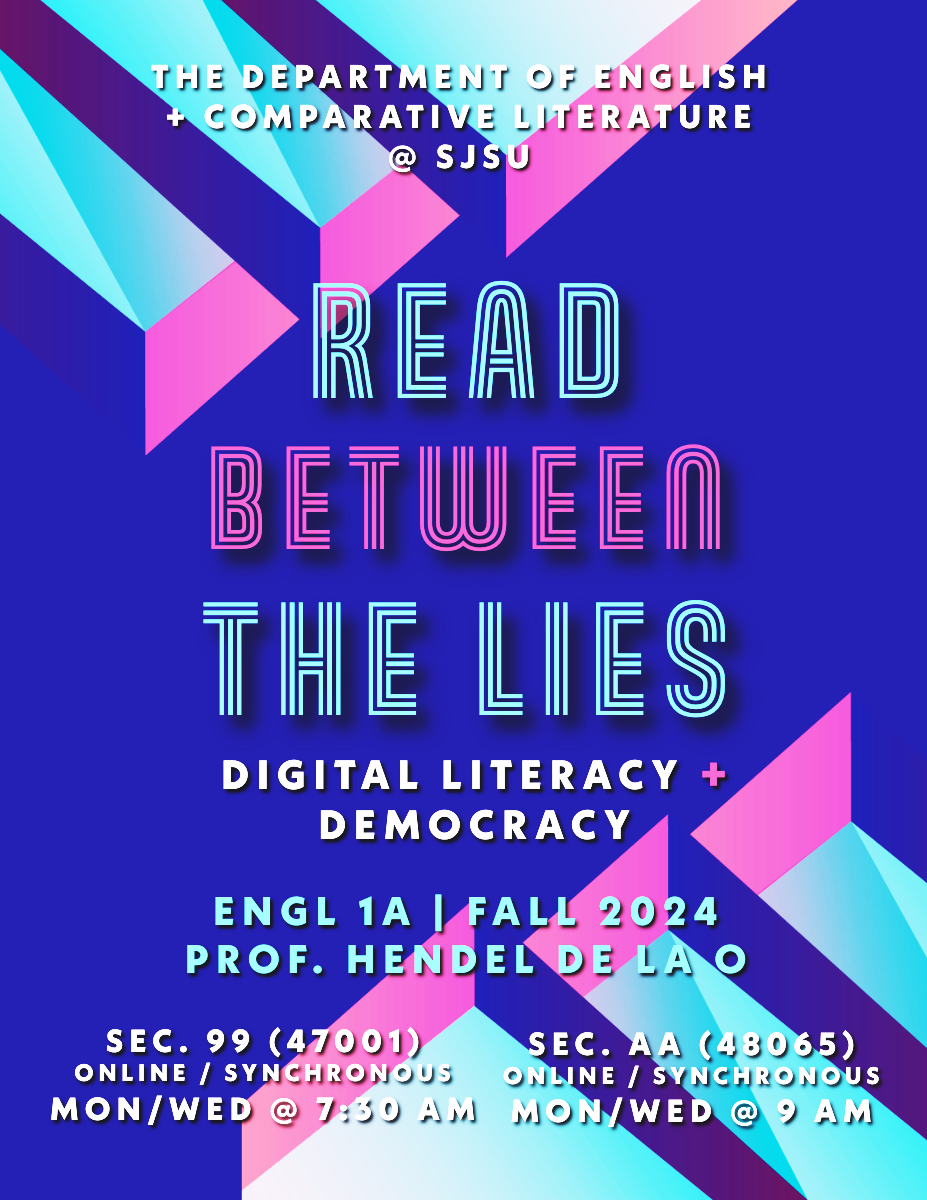 In Spring 2024, San José State University's First-Year Writing Program (FYW) launched a Digital Literacy Initiative with support from Adobe Systems and the Provost's Office. SJSU’s identity as Silicon Valley’s Public University demands that we be at the forefront of supporting students’ digital literacy. In FYW, we're particularly interested connecting evolutions in online and digital media with evolutions in writing, reading, & literacy.